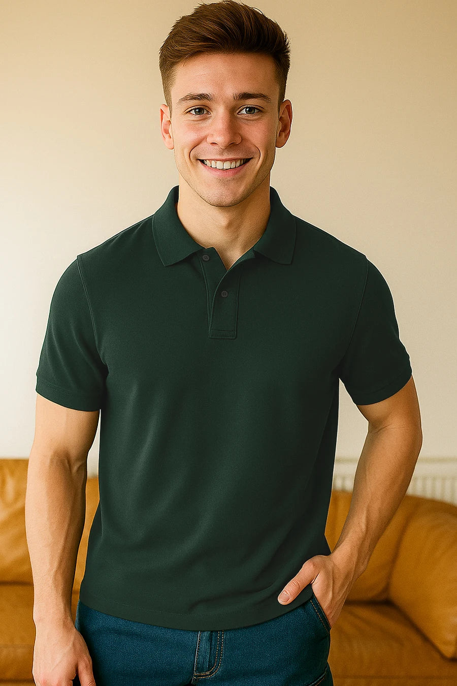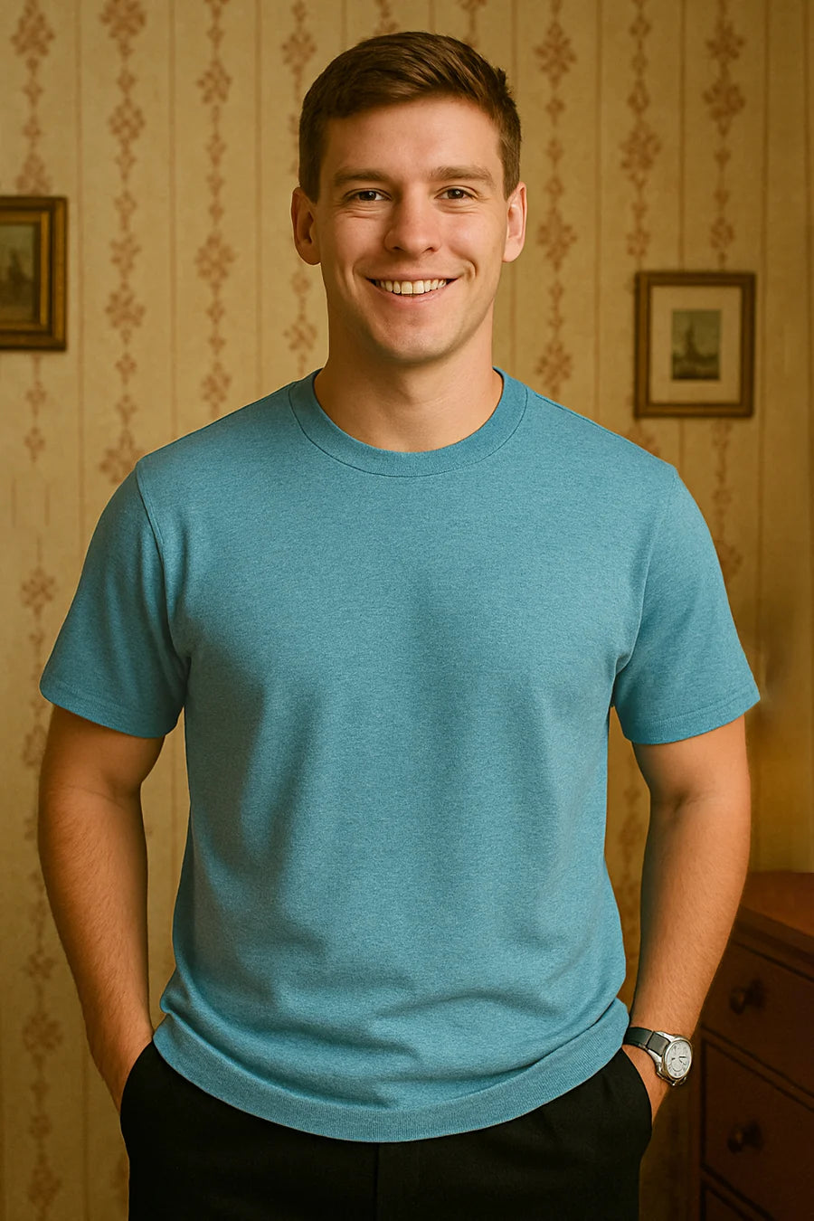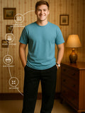 Celrulean Melange Round Neck Short Sleeved Plain Men's T-shirt