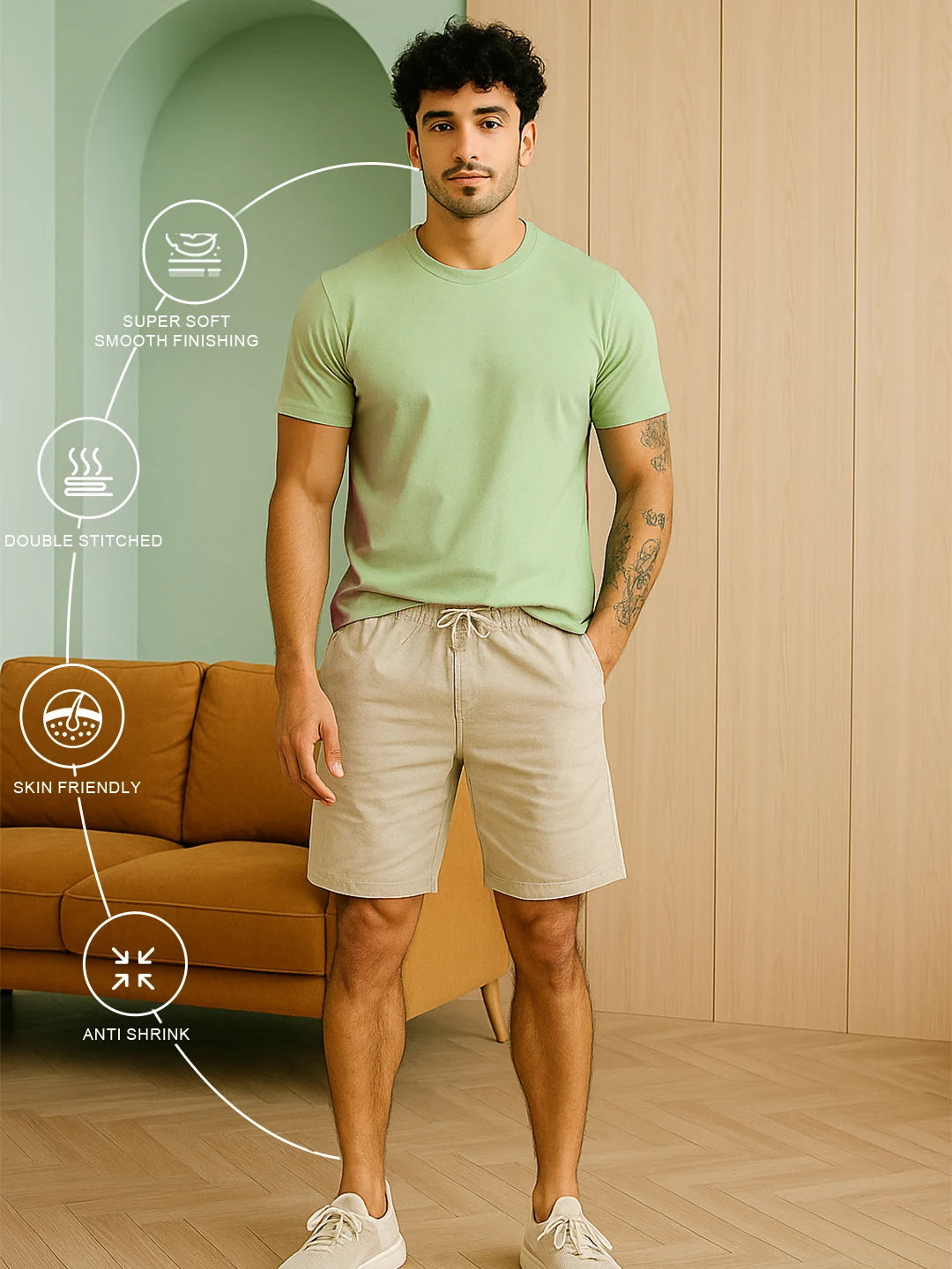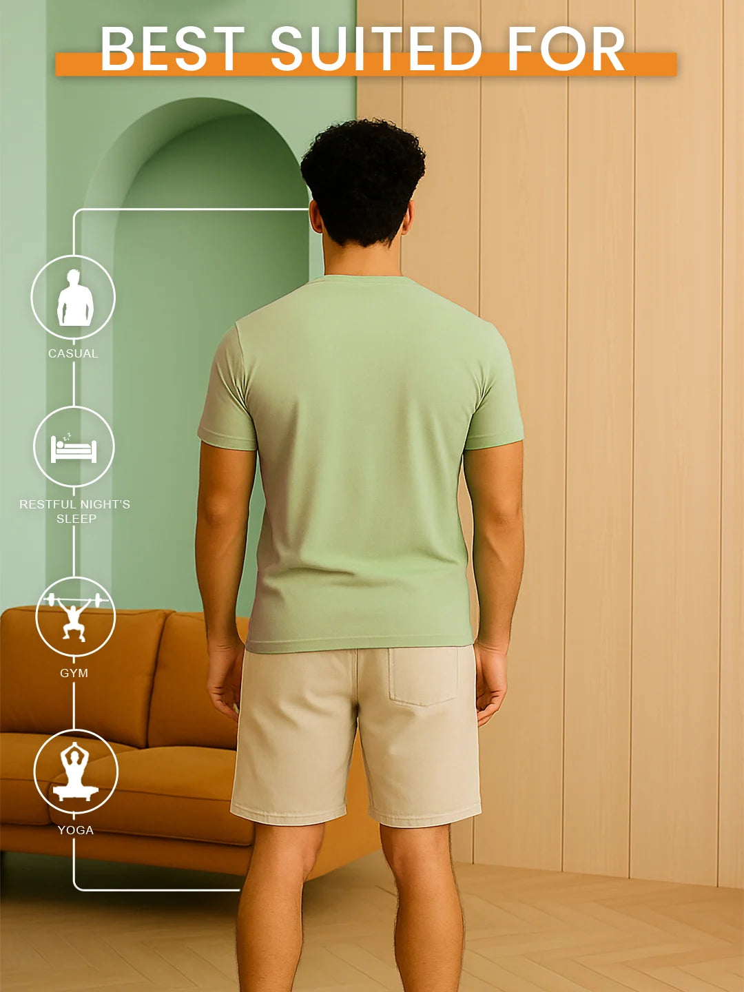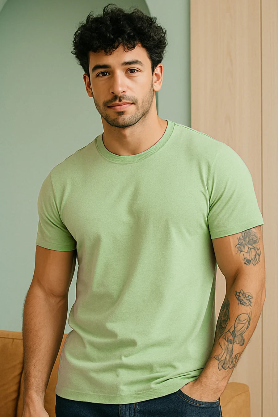 Mint Green Round Neck Short Sleeved Plain Men's T-shirt
