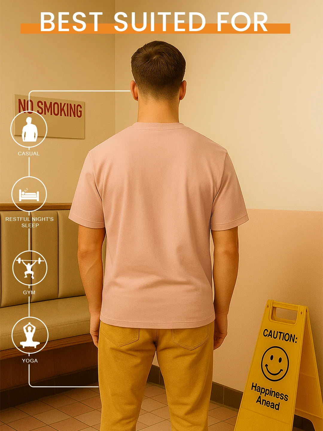 Peach Round Neck Men's T-shirt