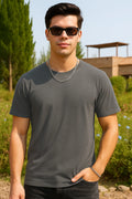 Smoky Grey Round Neck Short Sleeved Plain Men's T-shirt
