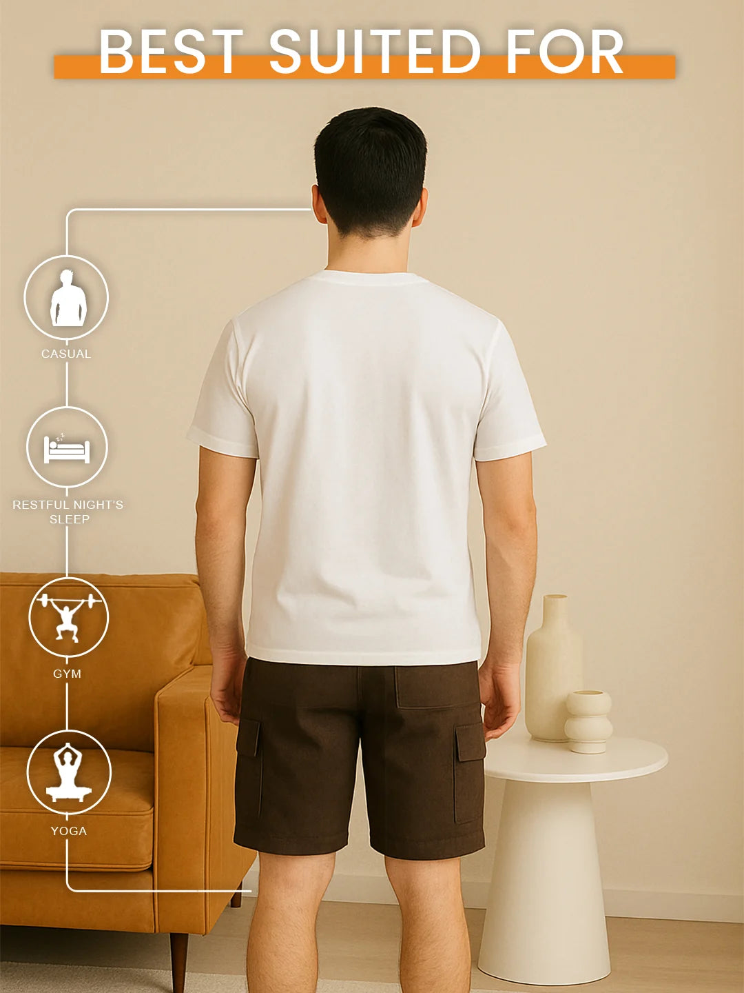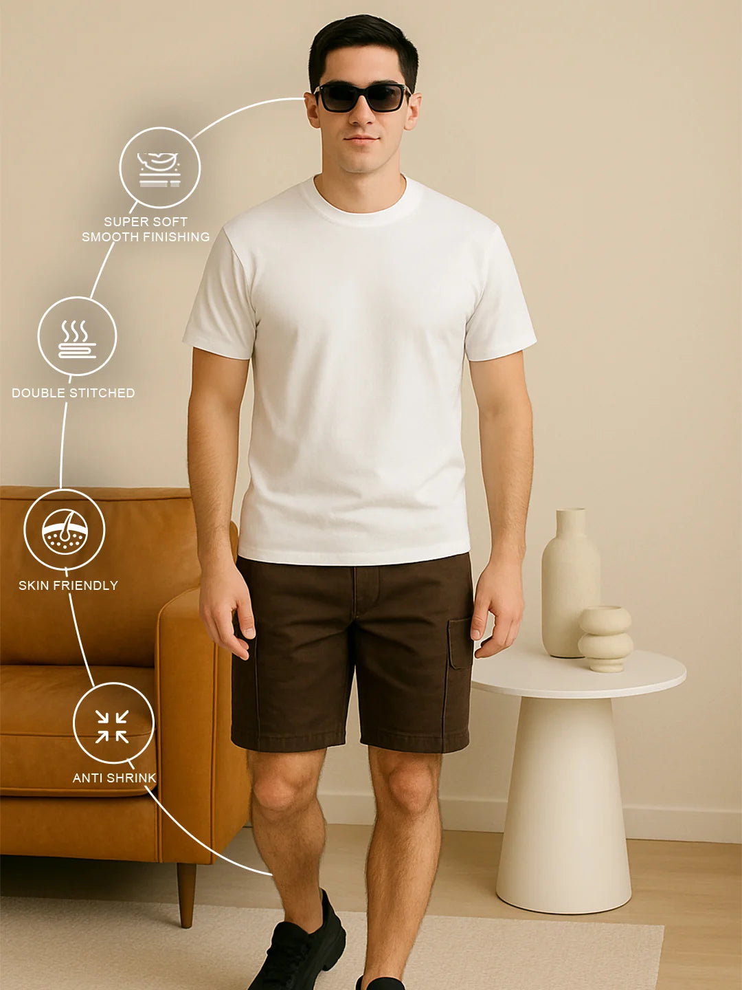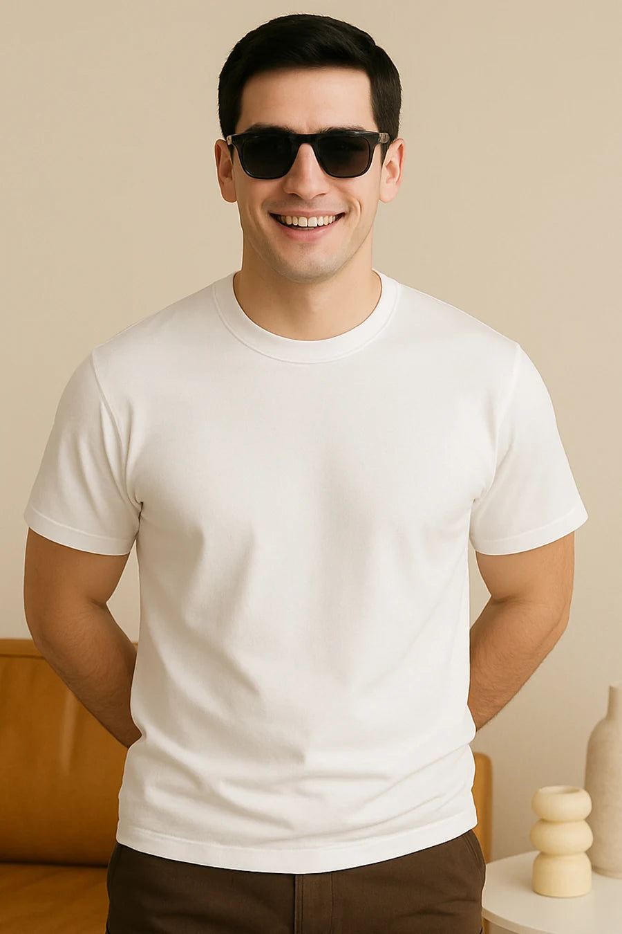 White Round Neck Short Sleeved Plain Men's T-shirt